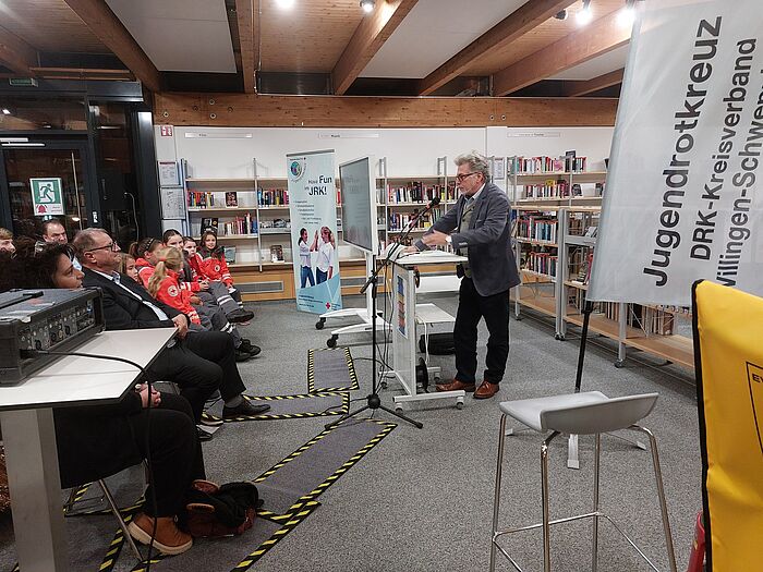 Eröffnet wirde die Ausstellung am 2. Oktober 2025, hier waren auch der Vizepräsident des Badischen Roten Kreuzes Peter Löchle, der Kreisvorsitzende des DRK-Kreisverbandes Villingen-Schwenningen Oberbürgermeister Jürgen Roth und Jovin Büchner anwesend. Ferner konnten Gäste vom Henry Dunant-Museum in Heiden begrüßt werden.
