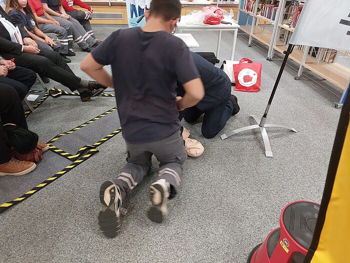Neben den Wandtafeln der Wanderausstellung 100 Jahre Jugendrotkreuz, ergänzte eine Schulbank die auf die Anfänge des Jugendrotkreuz an den Schulen aufmerksam macht, mit Exponaten aus der Gründerzeit, ein weiterer Bereich zeigte Jugendrotkreuz Uniformen und Bekleidung, sowie Exponate wie Franz Göttlers Moulagenkoffer aus den 70er Jahren.